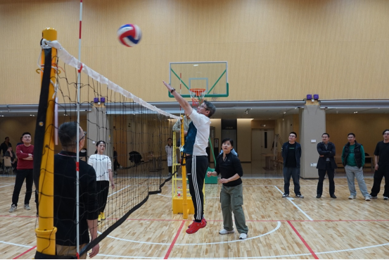 寒冬难挡热情,赛场尽显拼搏与团结。参赛队员精神抖擞、配合默契,拦网果断、扣杀有力、救球敏捷,精彩纷呈;场边观众热情高涨,加油声、喝彩声此起彼伏,气氛热烈,充分展现了集团职工昂扬向上的精神风貌。